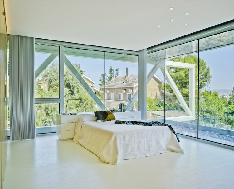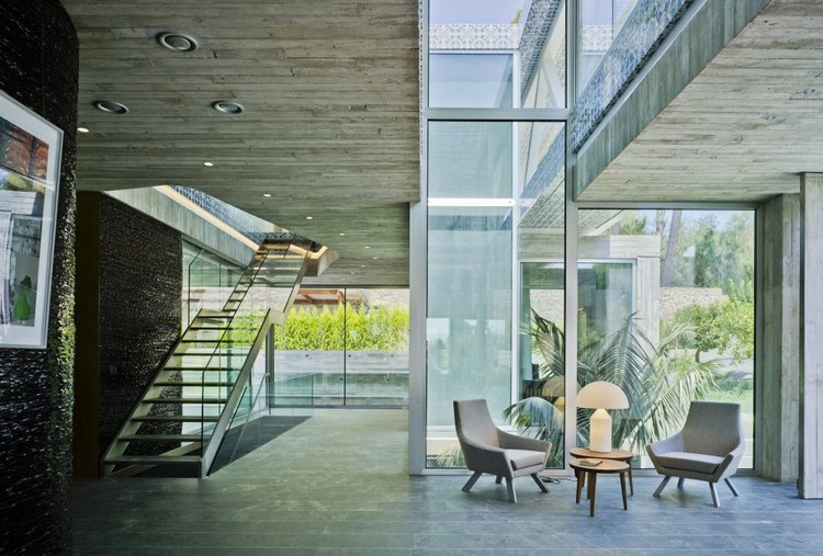 1.舒適性體驗 地下室內部映照著一定的自然光可以滿足休閑娛樂所用。趣味從停車庫開始,透過這里的后擋風玻璃窗設計可以看見游泳池;由彩色模壓混凝土鋪筑成的人行道加強了房間與室外區域的聯系; 2.居住性體驗 一層包括一個C形區域并向私人開放向空間敞開。巨大的懸臂頂棚將內外區域連接起來,家人可以在這里聽音樂、看展覽。