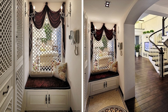 別墅中有大量的裝飾擺件,無論是歐式經典的電話還是復古風格的化妝盒,都能看出很多不少的故事。精致的裝飾本身就是一件極有藝術色彩的珍品,又能很好的提升整個家居的生活品質。