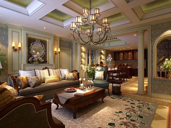 歐美風(fēng)格裝修設(shè)計(jì):開放式的客廳設(shè)計(jì),客廳和餐廳完美地融合在一起,空間上并不會(huì)給人擁擠的感覺,反而顯得大氣十足。客廳的擺設(shè)搭配地板和各種家具,顯得溫暖舒心,墻面的裝飾和吊頂設(shè)計(jì),讓客廳的裝飾顏色的造型合理搭配,高貴華麗的感覺不言而喻。