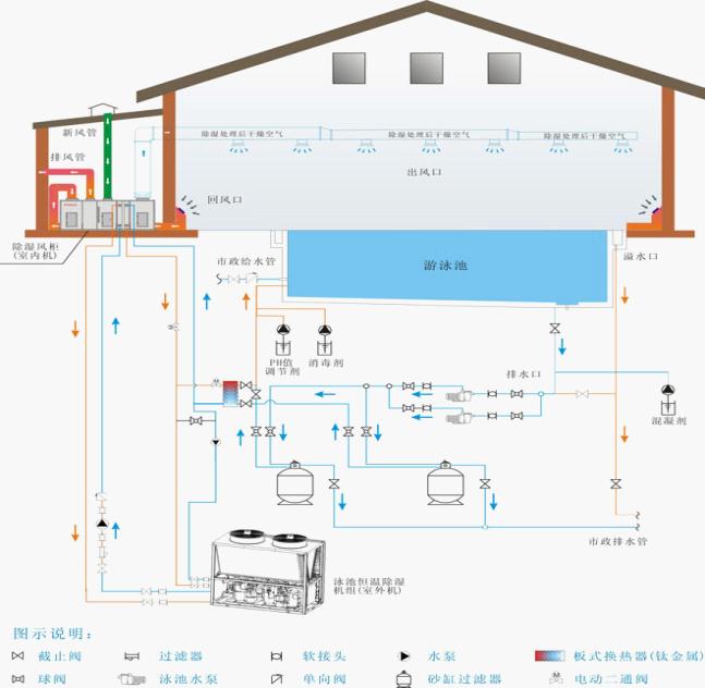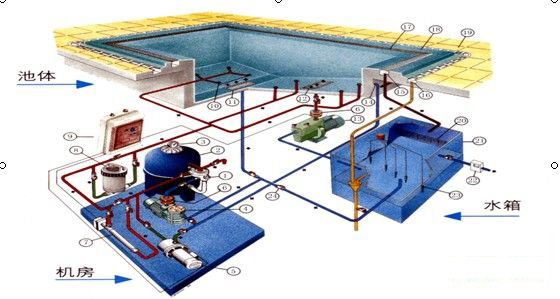 池水的過(guò)濾,是利用過(guò)濾精度高達(dá)6-15微米的過(guò)濾袋。通過(guò)吸水口將池水吸入,經(jīng)過(guò)濾袋過(guò)濾后,向前面及側(cè)面的噴嘴排出泳池。這樣池水就產(chǎn)生了回旋原理,確保池中的水都經(jīng)由過(guò)濾袋過(guò)濾。