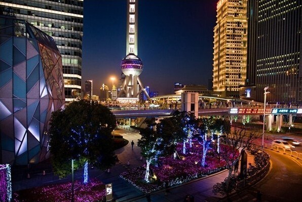 30歲的K·P·Yue與幾名外國女友一起在外灘等出租車。