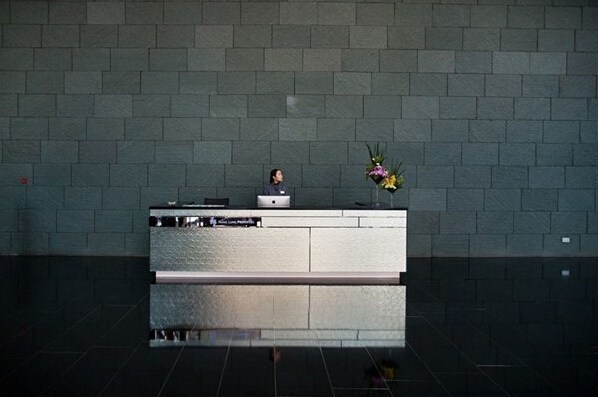 上海,一家夜總會入口處,坐在沙發上等待的女孩們。