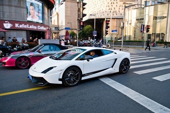 浦東世紀大道一間豪車展廳內,一位男士試駕報價450萬人民幣的法拉利458 Spider。